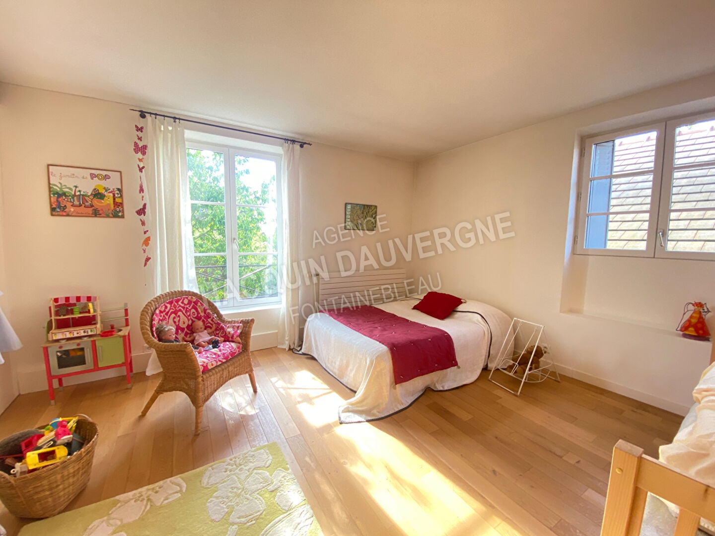 Héricy, très joli village bord de Seine doté d'une gare où passe la ligne R, magnifique maison très au calme et très lumineuse de 185m2 habitables comprenant au R.D.C. : une entrée, une salle d'eau avec WC, une chambre, un séjour triple exposition d'environ 60m2 avec cuisine aménagée et équipée ouverte ; à l'étage : 3 chambres dont une très grande, une salle de bains avec WC . Vaste grenier aménageable.