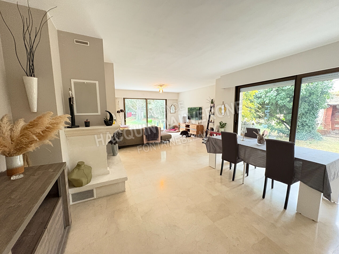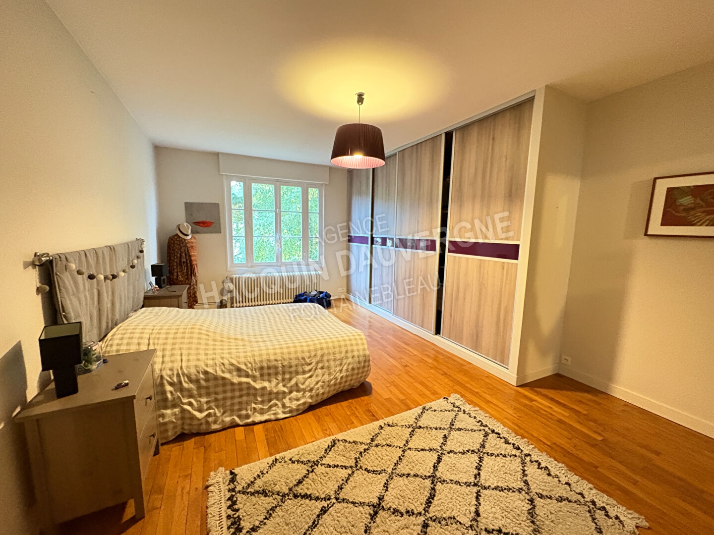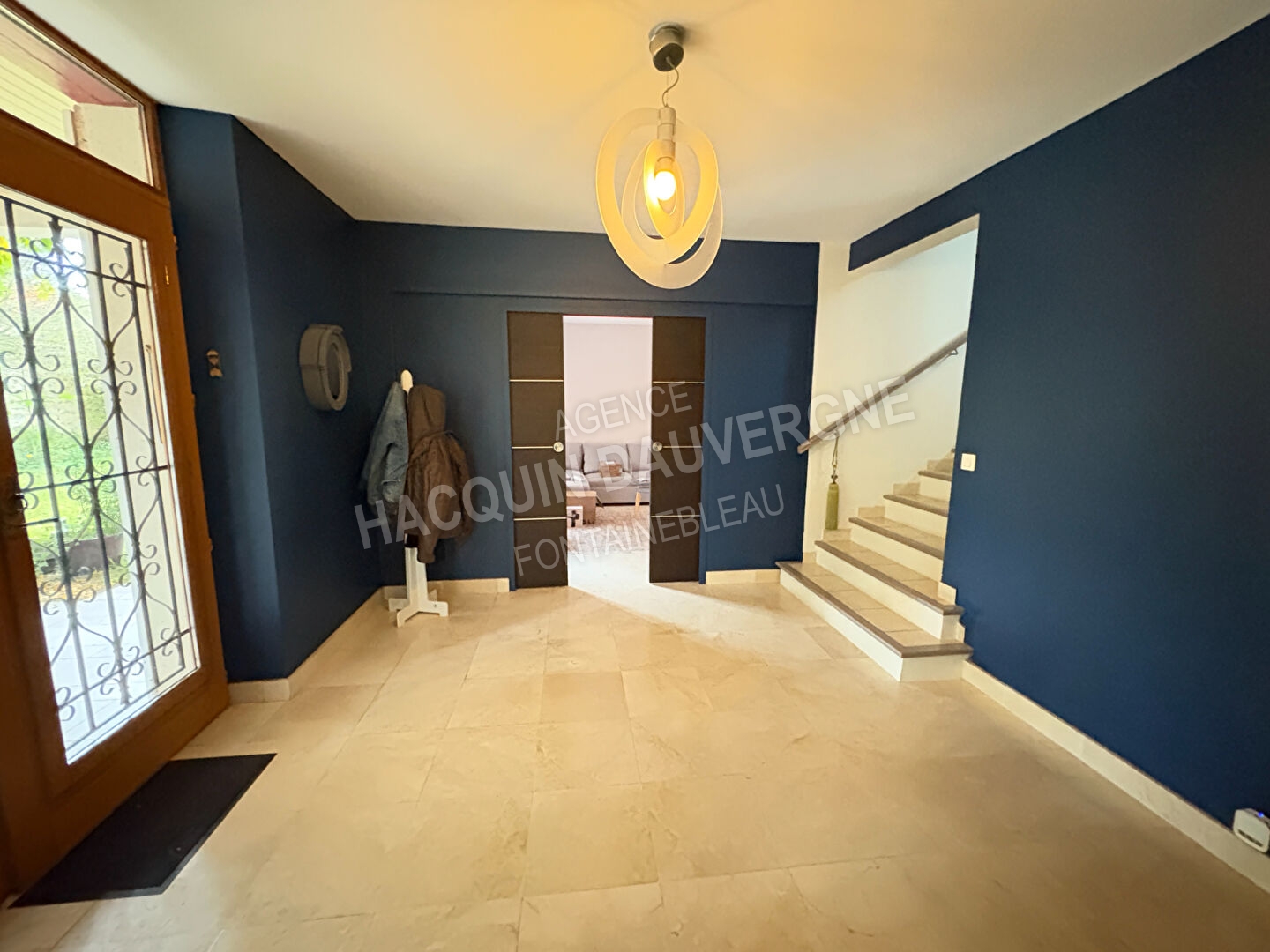 A LA ROCHETTE, 5mn en voiture ou en bus de la gare de MELUN, au centre d'un terrain arboré de 2224m2, très jolie meulière et son agrandissement des années 2000 qui lui donne un caractère atypique et moderne. On entre par une vaste entrée desservant d'un côté une grande chambre, de l'autre, un séjour double avec cheminée insert ainsi qu'une cuisine aménagée ouvrant sur la terrasse, toilette et buanderie. Le grand palier du 1er étage donne accès à 4 chambres, une salle de bains, une salle d'eau et un WC. Au second étage : une grande chambre avec sa salle d'eau et WC complètent ce bien. Très grand garage pour deux voitures, cave et grenier. Abri jardin.