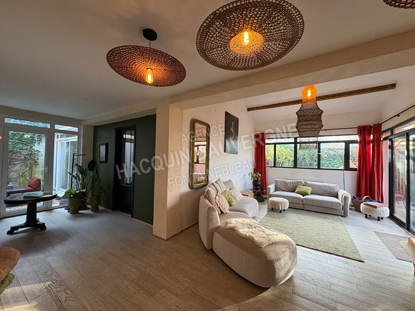 Une 3ème partie avec : séjour double, bureau, trois chambres, 2 salles d'eau avec WC, buanderie, 2 terrasses et jardin.