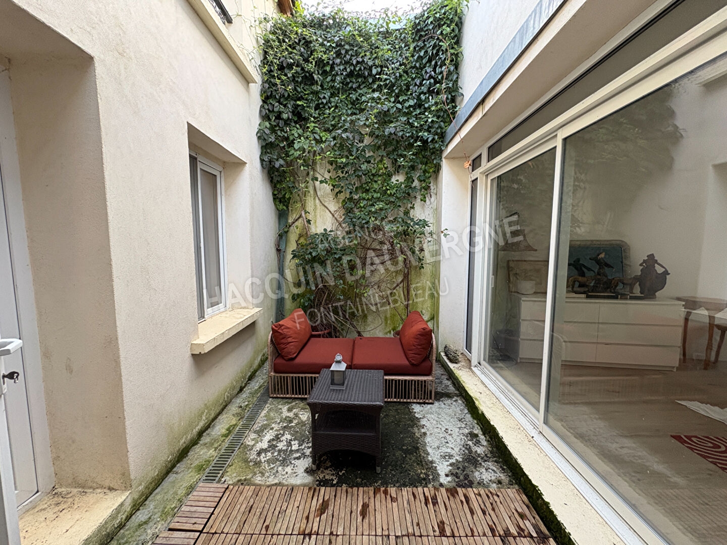 En plein centre de Moret sur Loing, à deux pas des commerces, vaste maison d'habitation en très bon état pouvant être divisée en trois parties, plus un terrain constructible de 1500m2.