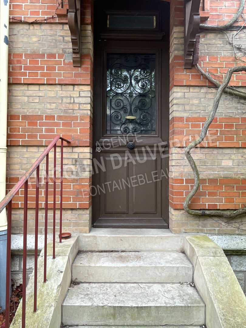 MORET SUR LOING, sur terrain très ensoleillé de 565m2 , maison des années 30 élevée sur sous-sol complet en partie aménagé, comprenant au R.D.C. : une entrée, un salon, une salle-à-manger, une cuisine aménagée ouvrant sur le jardin, un WC avec lave-mains. Au 1er étage, palier, deux belles chambres, une salle de bains et un WC. Au second étage, magnifique palier avec colombages ( la moitié en peinture), 2 chambres, une salle d'eau, un bureau et un dressing. Très beaux parquets, cheminées anciennes.