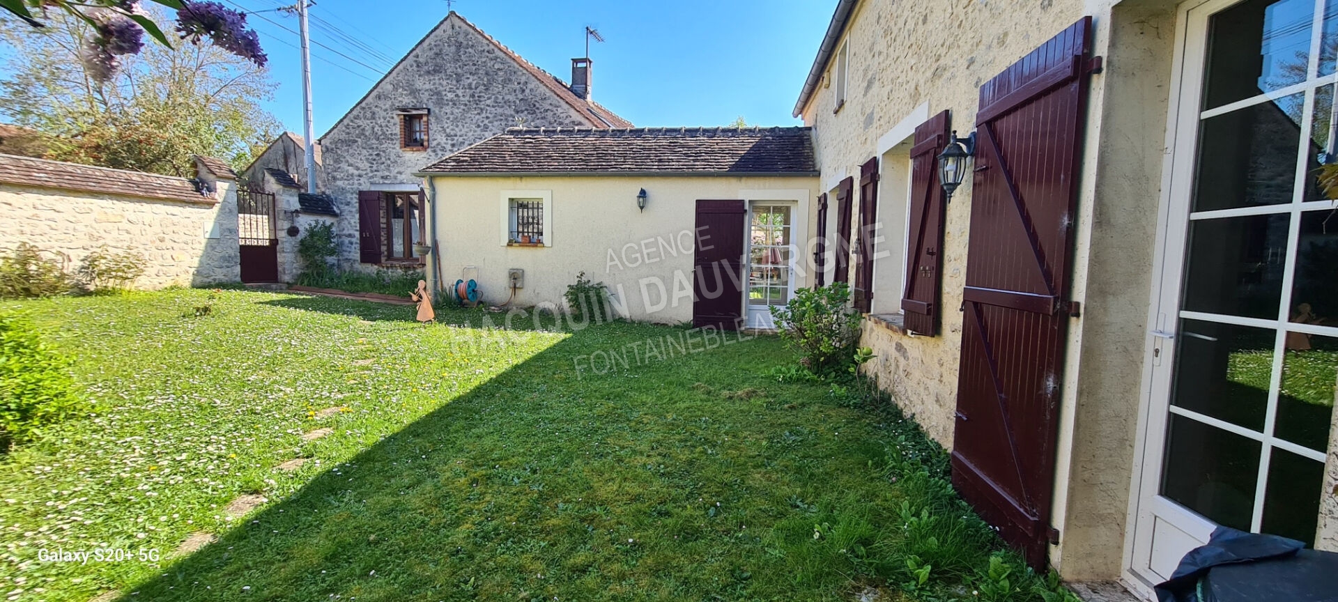 A 20 km de FONTAINEBLEAU, dans joli village très fleuri, habitation composée de 2 anciennes maisons réunies par un couloir faisant office d'entrée. D'un côté, la maison offre une salle-à-manger avec magnifique cheminée, une cuisine aménagée ouverte ouvrant sur une très agréable cour ensoleillée, une buanderie avec WC ; au 1er étage : grand palier avec mezzanine, 2 chambres et salle de bains avec douche et baignoire et WC. La seconde partie de la maison comprend au R.D.C. : un salon, une pièce transformée en véritable "café à l'ancienne" faite pour y recevoir les amis et ouvrant sur le jardin ; au-dessus 2 chambres, un bureau, un WC ainsi qu'une pièce prévue pour une future salle de bains.