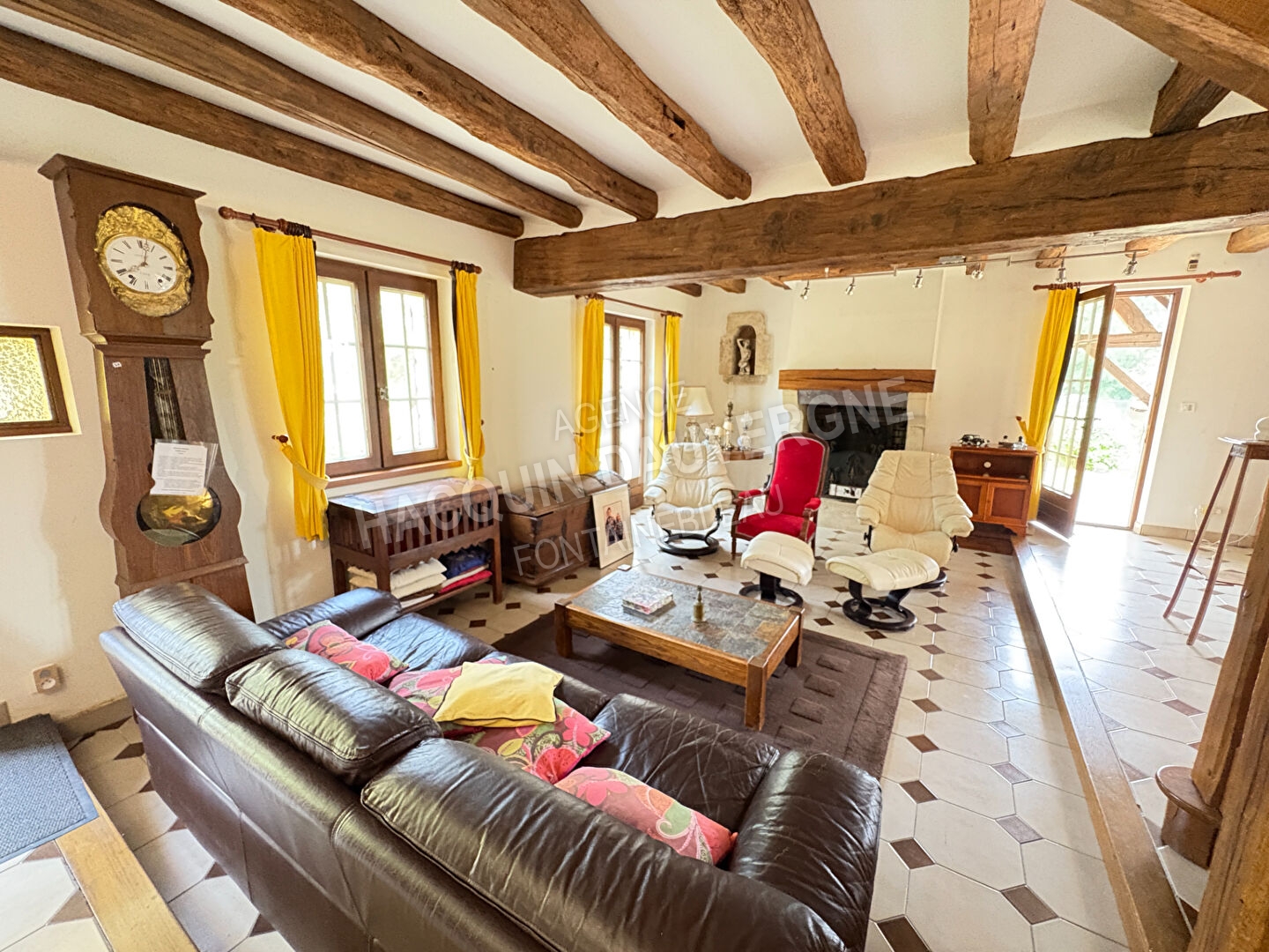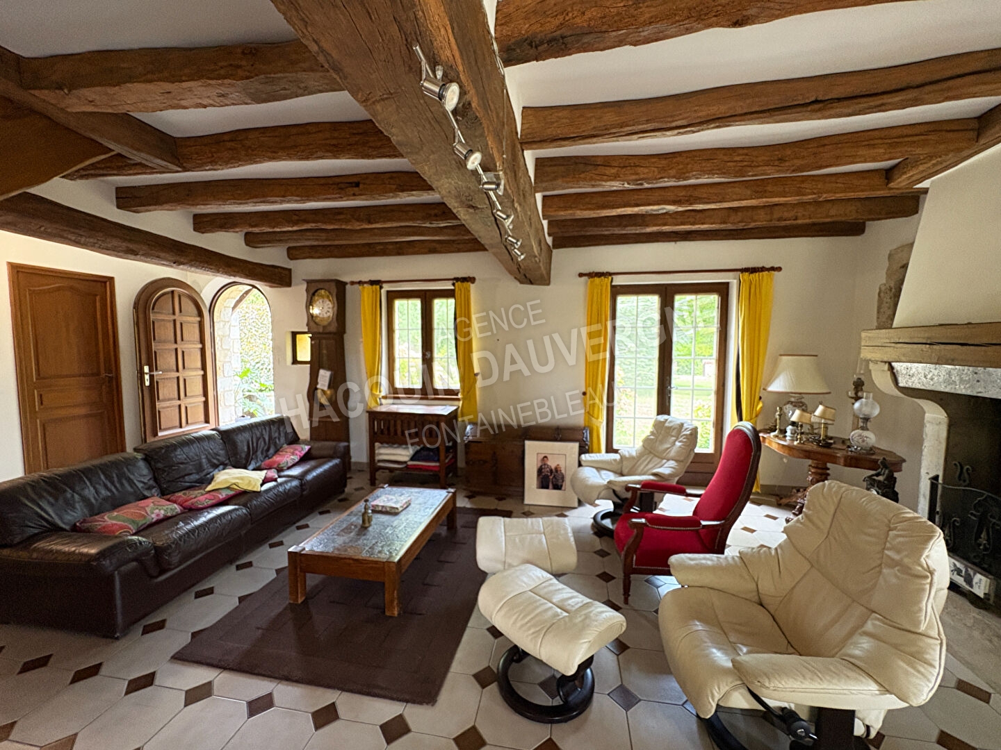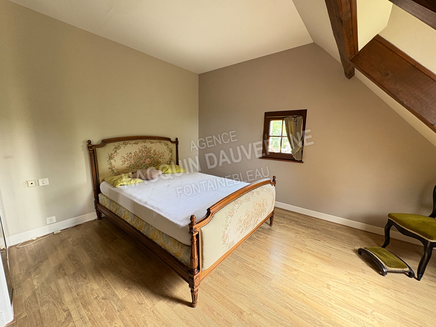 A ST SAUVEUR SUR ECOLE, 17km de FONTAINEBLEAU, maison en pierre construite en 1982 , de 145m2 carrez (environ 200 au sol). Elle offre un très vaste séjour avec cuisine aménagée ouverte, cellier et WC avec lave-mains, un garage aménageable en chambre et salle d'eau déjà créée ; à l'étage, palier, 5 chambres, une salle de bains et WC. Très joli jardin fleuri , arboré et surtout doté d'un magnifique verger. Une parcelle du jardin est constructible. Nombreux rangements.