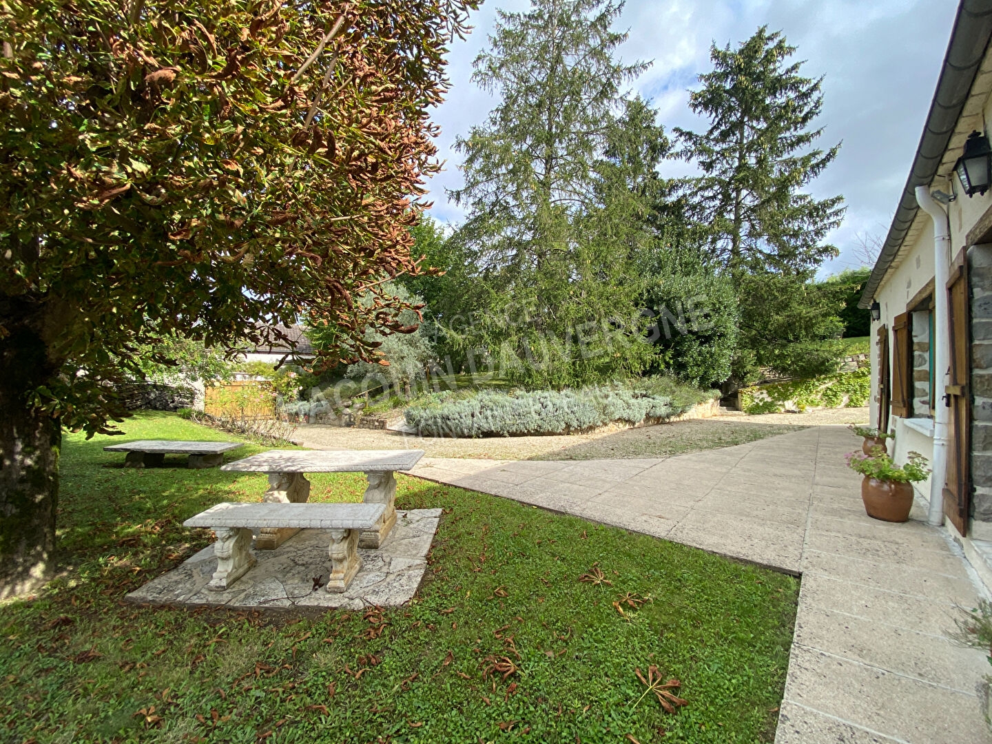 La cour pavée fermée par la maison en L, donne non seulement du charme à la maison, mais aussi permet de cacher le jardin arboré et fleuri d'environ 1000m2 derrière la maison.