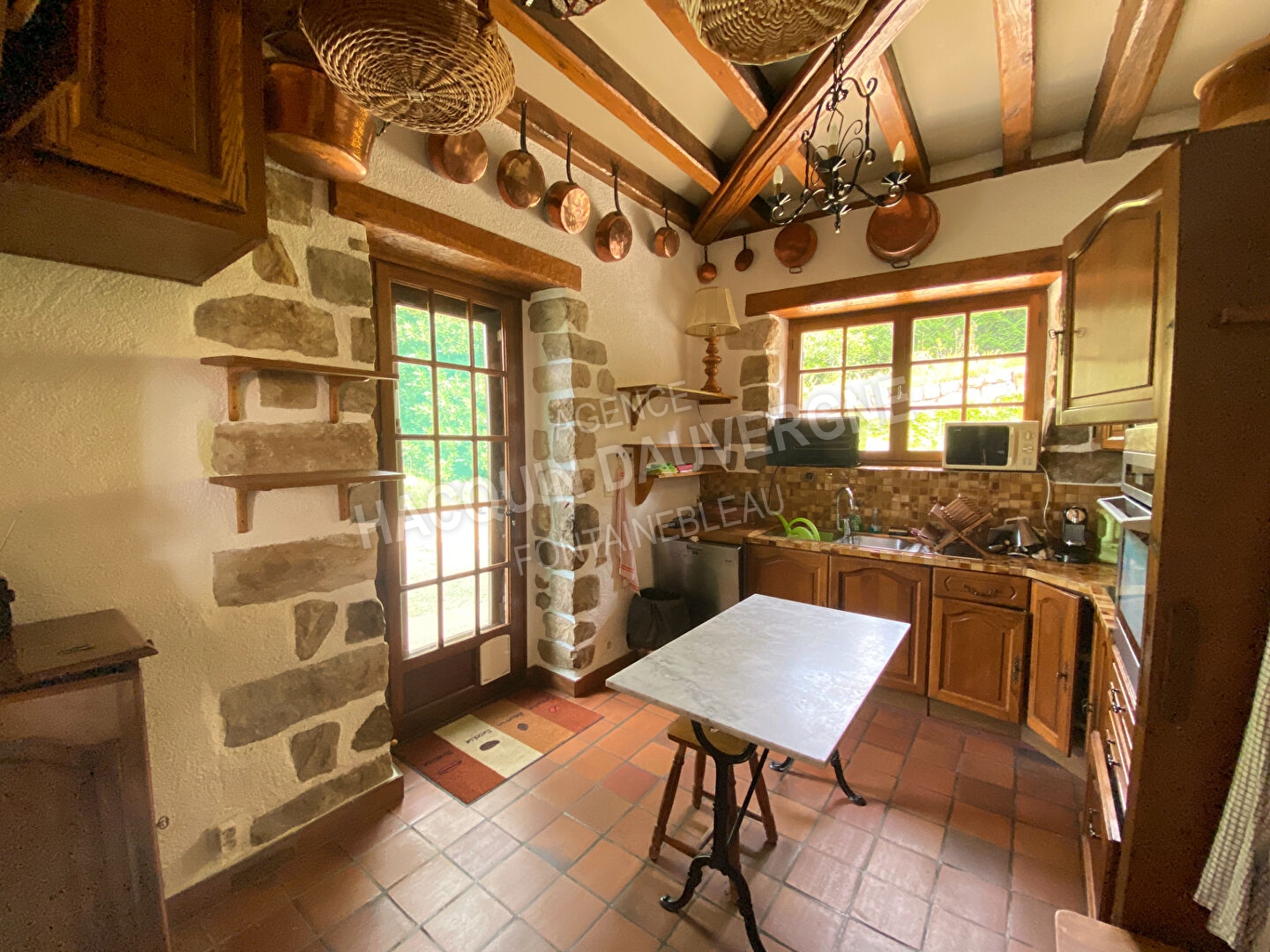 A VINNEUF dans l'Yonne, joli village avec commerces et école primaire, à 35 km de FONTAINEBLEAU et à 100 km de PARIS, ancienne grange transformée en habitation et agrandie par la suite. La maison offre dans la partie ancienne : une entrée, deux chambres, une salle de bains avec WC, puis dans la partie plus récente : une cuisine aménagée et équipée, un superbe séjour cathédrale de 65m2 avec cheminée et mezzanine donnant accès à la suite parentale avec salle de bains et WC. La maison pourra être vendue avec les meubles. Calme