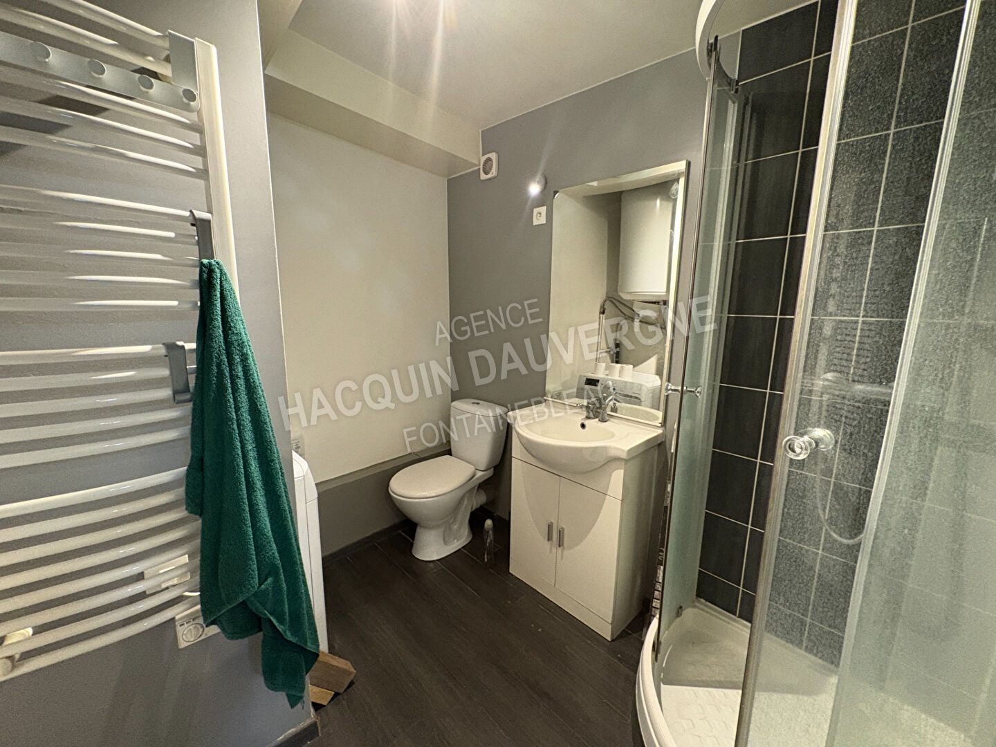 FONTAINEBLEAU, appartement meublé, au 1er étage d'une petite copropriété. Ce logement offre : une entrée directe sur un séjour avec cuisine aménagée ouverte, une chambre et une salle d'eau avec wc. LIBRE 1er décembre 2025