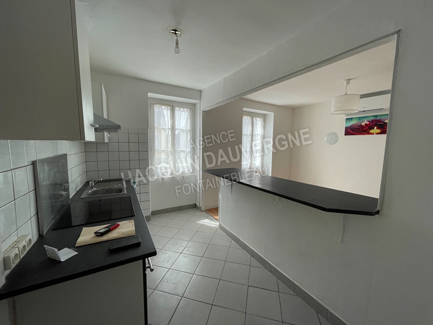 LA CHAPELLE LA REINE proche commerces, appartement d'environ 62m2 au 1er étage d'un petit immeuble de 3 lots, loué avec parking, cave et grand bûcher. Ce 3 pièces traversant offre : une entrée, un séjour avec cuisine ouverte en partie équipée, deux chambres, une salle d'eau avec WC .