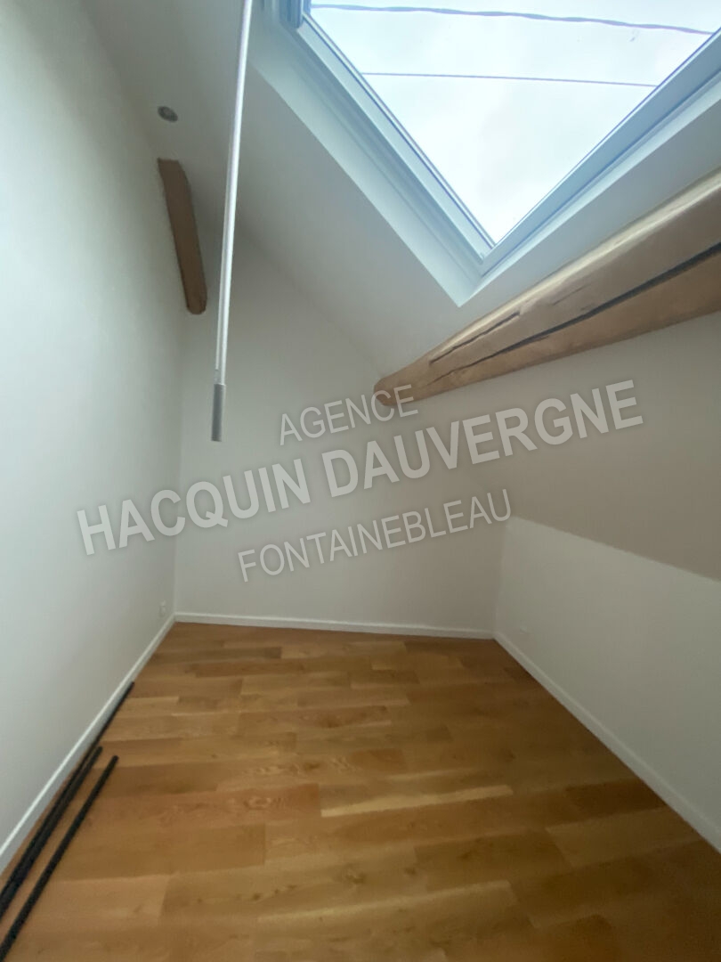 A 20mn de FONTAINEBLEAU, adorable maison de 77.42m2 entièrement rénovée au goût du jour. Cette maison offre : une entrée directe sur un séjour avec cuisine américaine, une salle d'eau, WC ; à l'étage : palier pouvant servir de bureau, grande chambre et chambre d'enfant.